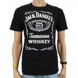 d . a black T-shirt with either a heavy metal band logo or the Jack Daniel’s Old N° 7 label printed on the front