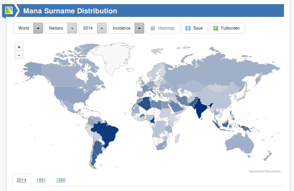 … turns out the Mana family name is prevalent in India, while the highest density of Mana is to be found in French Polynesia.