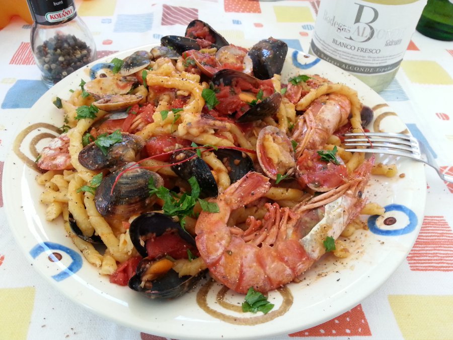 I am not a sophisticate, however for me the top is the busiate allo scoglio. To drink a sparkling white wine, perhaps with a peachy fruity taste. Should you ever get out of the den (I myself have this problem) and take a ride around here, let me know and I’ll be happy to have you as my guest for dinner.