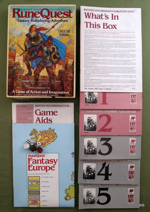 And as far as boxes were concerned, my fantasy roleplaying box was RuneQuest Third Edition, the Avalon Hill box that turned the Glorantha RPG into a sort-of-generic-fantasy-game with a tacked-on “Fantasy Europe” setting that did not convince anybody. Once again, familiarity with the rules, flexibility and adaptability were what got me on board.