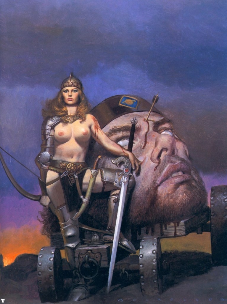 And there, while trapped once again in the wonderful art of Segrelles, I found something that I had missed at the time – somebody, armed with a fine-tipped black marker, had censored all the topless ladies in the color section, defacing not only Segrelles’ illustrations, but also a few of Corben’s.