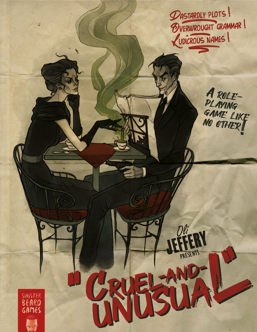 The basic idea might remind someone of the vastly more popular game Fiasco, but while Fiasco leaned more on a Quentin Tarantino-esque style, Cruel & Unusual is more tongue in cheek and sophisticated, and cites Mervyn Peake among its inspirations. There is a gusto for the grotesque, and a more British sense of black humor to the game.