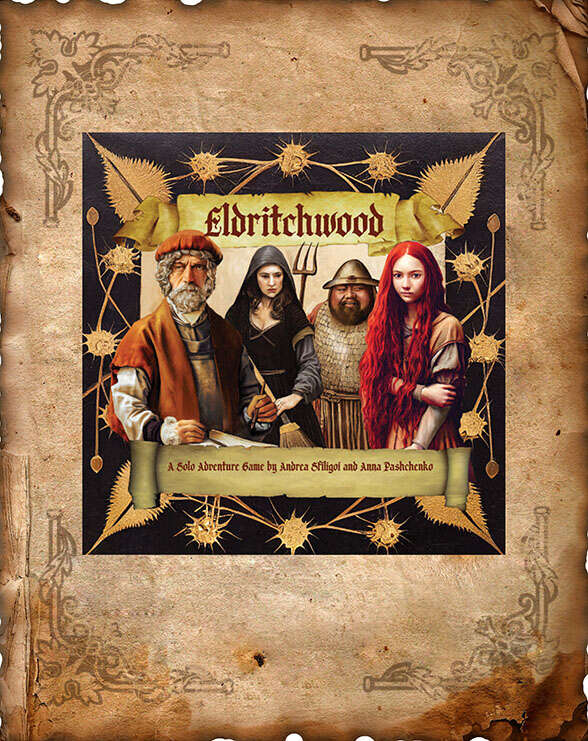 Eldritchwood, by Andrea Sfiligoi and Anna Pashchenko, is a single player (but there are options for collaborative, multy-player gaming) investigative fantasy RPG that takes a novel (to me, at least) approach to solo roleplaying – the player handles a number of characters, alternating point of view during the development of the adventure.