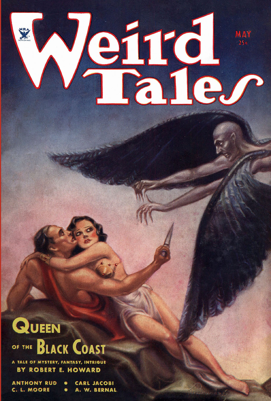 The story was originally published in September 1933 issue of Weird Tales – and again made the cover. The Howard piece was the opener of an issue jam-packed with great stories: Edmond Hamilton and Seabury Quinn, Hugh B. Cave, Jack Williamson and Frank Bellknap Long.