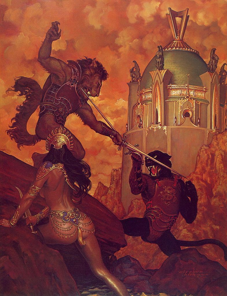I first became aware of Stephen Hickman’s work when I saw the Cthulhu idol the artist sculpted, and that has become to many the definitive look of Big C. In fact, Hickman’s work had been under my eyes for ages, starting with the Dragaera covers he did for Steven Brust, to illustrations for Tolkien and Conan comics and an iconic Harlan Ellison cover.