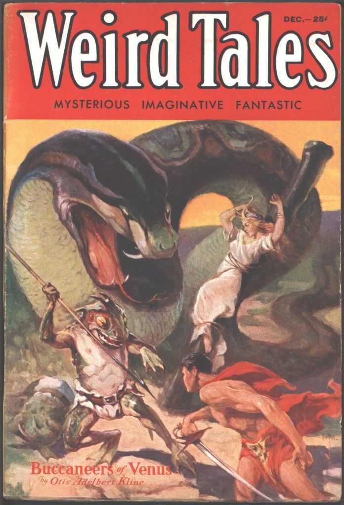 And so it begins -it’s December 1932 and Weird Tales magazine offers quite a selection to those readers willing to spend 25 cents: there’s a Jules DeGrandin story by the ever-popular Seabury Quinn, and stories by Edmond Hamilton, Vincent Starret and the second installment of Buccaneers of Venus (who gets the Allen St John cover), by Otis Adelbert Kline, plus the conclusion of a serialized reprint of Mary Shelley’s Frankenstein. The third story in the issue is a new novelette by Robert E. Howard, featuring a new character – Conan the Cimmerian, in his first outing, The Phoenix on the Sword. And this is the first day of Cimmerian September.