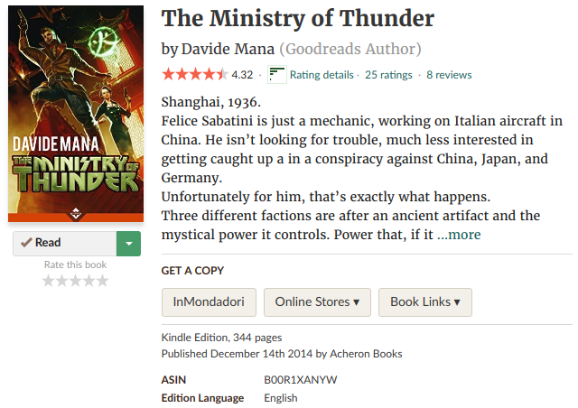 I have just learned from my publisher, Acheron Books, that The Ministry of Thunder is their bestselling title on the international marketplace.